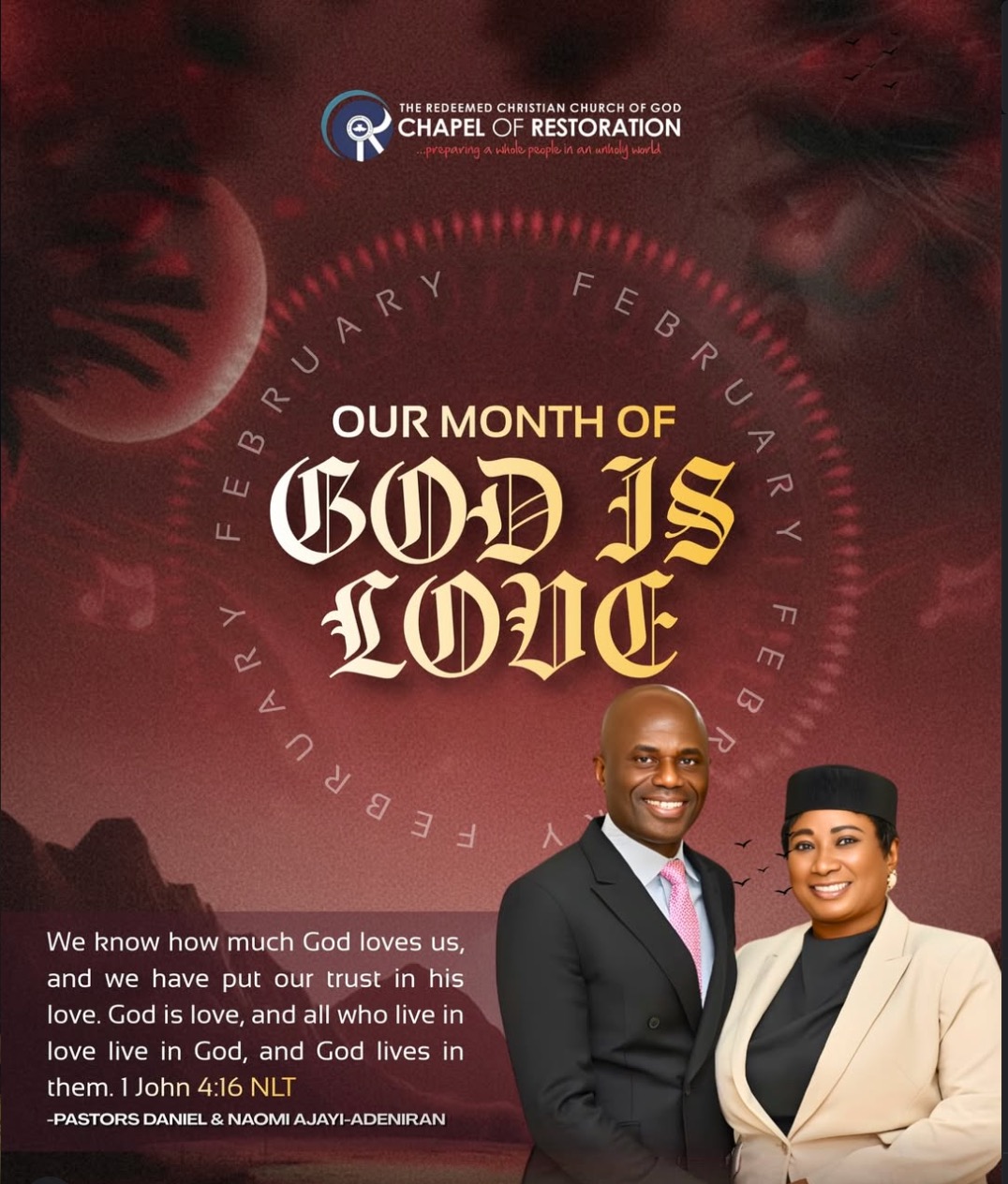 At Chapel of Restoration, our vision is to prepare a whole people in an unholy world, and God has been so faithful in helping us achieve this vision. We continue to experience God’s perfect work of restoration in our lives.